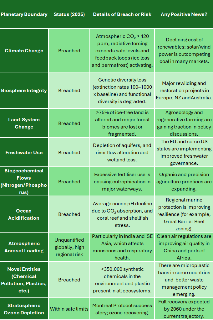 If the breach of planetary boundaries is the result of extractive systems and disconnection — from nature, each other and future generations — then the way forward must involve improved relationships, renewed responsibility, and meaningful action on eco-regeneration. While government commitments are critical, individuals and local groups are not powerless.